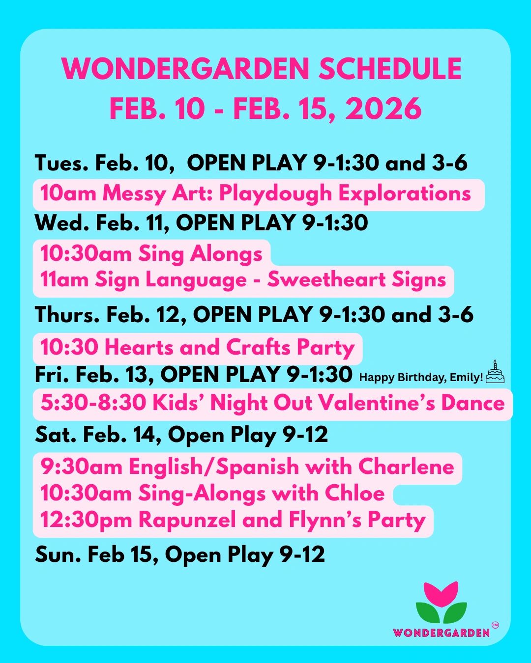Valentine's Themed Music at The Mall at Wellington Green! Regular OPEN PLAY will happen from 9-1:30 at WONDERGARDEN; this show will be held down the road at the mall. ASL interpreter provided!
